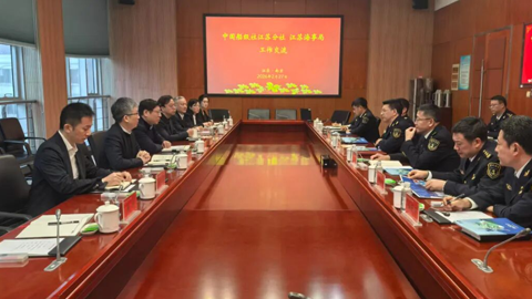 2月27日,中国船级社(CCS)江苏分社总经理庄重、党委书记周驰一行拜访江苏海事局,与江苏海事局局长缪昌文、副局长马一意、党组成员潘江华、二级巡视员郑跃峰及相关部门负责同志进行交流座谈。