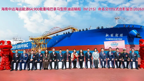 近日,中国船级社CCS审图和建造检验的64900载重吨原油运输船“驭能鲲鹏”轮命名交付,CCS大连分社副总经理梁峰出席了命名仪式。