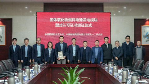 中国船级社武汉分社为中船712所颁发国内首张固体氧化物燃料电池型式认可证书